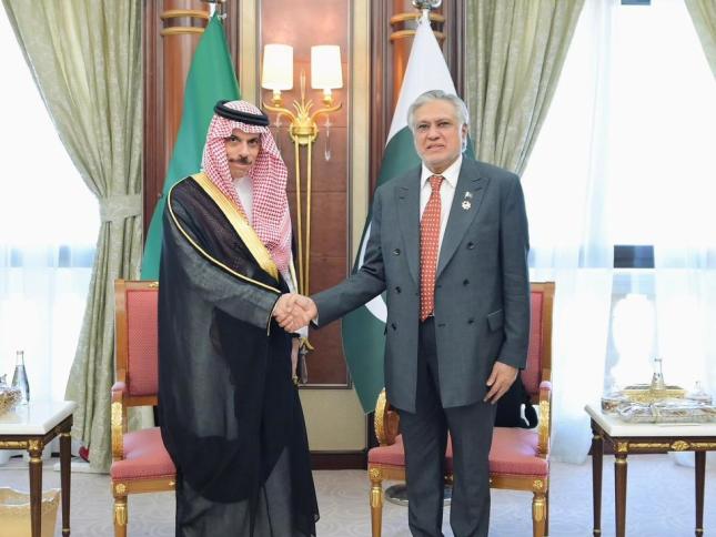 اسحاق ڈار اور ان کے سعودی ہم منصب شہزادہ فیصل بن فرحان کے درمیان ملاقات میں دونوں رہنماؤں نے دوطرفہ تعلقات، علاقائی اور بین الاقوامی امور، خصوصاً غزہ کی صورت حال پر بھی تبادلہ خیال کیا۔