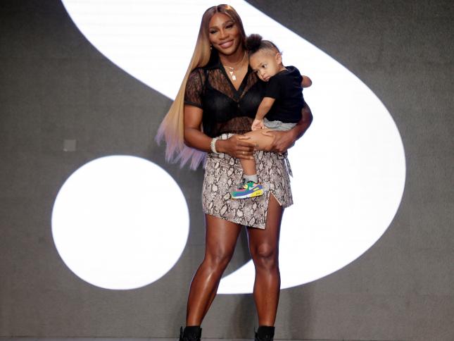 اس موقع پر وہ اپنی دو سالہ بیٹی اولمپیا کو بھی ساتھ لے آئیں۔ انہوں نے سانپ کی جلد والے ڈیزائن کی منی سکرٹ پہن رکھی تھی جو انہوں نے خود ڈیزائن کی تھی۔