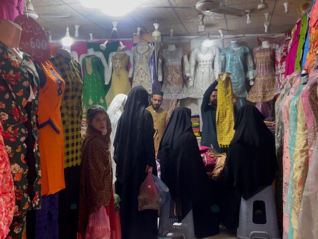 سستے کپڑے فروخت کرنے والے جہانگیر خان کا کہنا ہے کہ ’عید کے لیے نئے کپڑوں پر 600 روپے کی سیل لگانے کا مقصد غریب عوام کو عید کی خوشیوں میں شریک کرنا ہے۔‘
