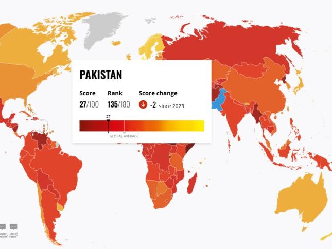 ٹرانسپیرنسی انٹرنیشنل کی حالیہ رپورٹ میں بتایا گیا ہے کہ گذشتہ برس پاکستان میں بدعنوانی کے تاثر میں اضافہ ہوا، جس پر وزیراعظم کے معاون خصوصی شہباز گِل نےکہا: ’یہ رپورٹ مسلم لیگ ن کے زمانے کی کرپشن کی داستان ہے کیونکہ یہ ڈیٹا ان سالوں کا ہے۔‘