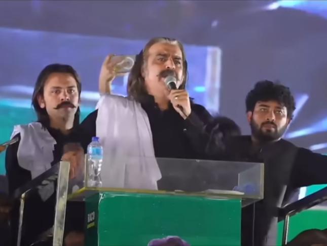 علی امین گنڈاپور نے مطالبہ کیا کہ ’عاصم منیر 25 کروڑ عوام کے سپہ سالار ہیں اور وہ عمران خان کے مسئلے کو حل کرنے میں اپنا کردار ادا کریں کیونکہ عمران خان نے انڈیا جنگ میں ثابت کیا کہ یہ جنگ ہماری جنگ ہے۔‘