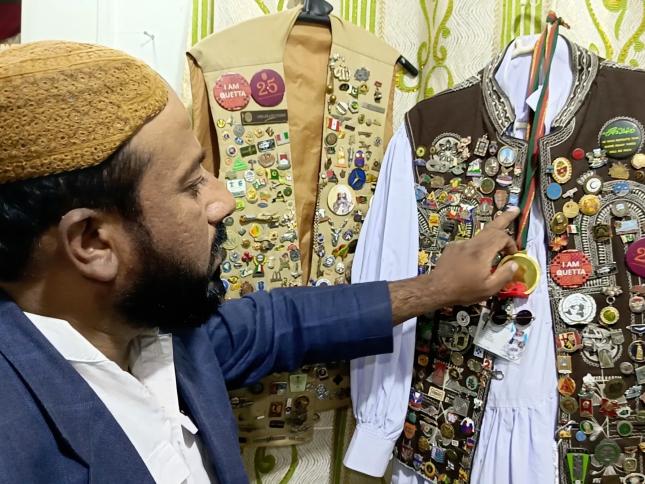 کوئٹہ کے ہوٹل دربان کی واسکٹ پر بیجز کی شکل میں سجی کہانیاں 25 سال کے دوران ہوٹل میں آنے والے مہمانوں نے یادگار کے طور پر شہاب الدین کی واسکٹ پر تقریباً 2880 بیج لگائے۔