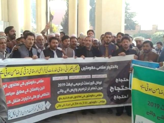 پاکستان ’سونے کے قلمدان رکھ کر ہاتھ کاٹ دیے‘: کے پی کے بلدیاتی نمائندے خیبرپختونخوا میں گذشتہ برس ہونے والے بلدیاتی انتخابات میں 25 ہزار نمائندے منتخب ہوئے، لیکن ابھی تک نہ تو انہیں انتظامی اور نہ ہی مالی اختیارات دیے گئے ہیں۔