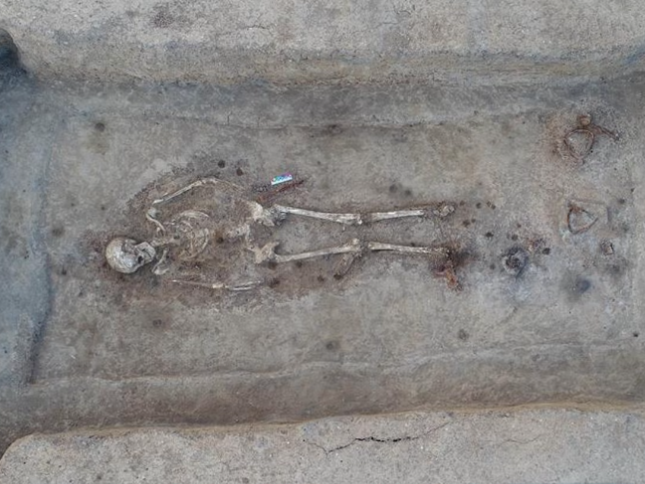 تازہ کھدائی میں ماہرین آثار قدیماس دریافت میں تقریباً 50 ہڈیوں کا سراغ لگایا گیا ہے جن میں 30 سال کے ایک شخص کی باقیات بھی شامل ہیں۔ نوادرات کے ساتھ دفن چیزوں میں جنگی کلہاڑا، چاقو، بربط سے ملتا جلتا کانسی کا بیلٹ بکل اور ٹوٹا ہوا برتن شامل ہے۔