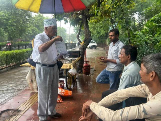 سابق پروفیسر اور سماجی کارکن وپن کمار ترپاٹھی نے پرانی دہلی میں ناصرف غزہ کے حق میں پمفلٹس تقسیم کیے بلکہ روزہ بھی رکھا۔